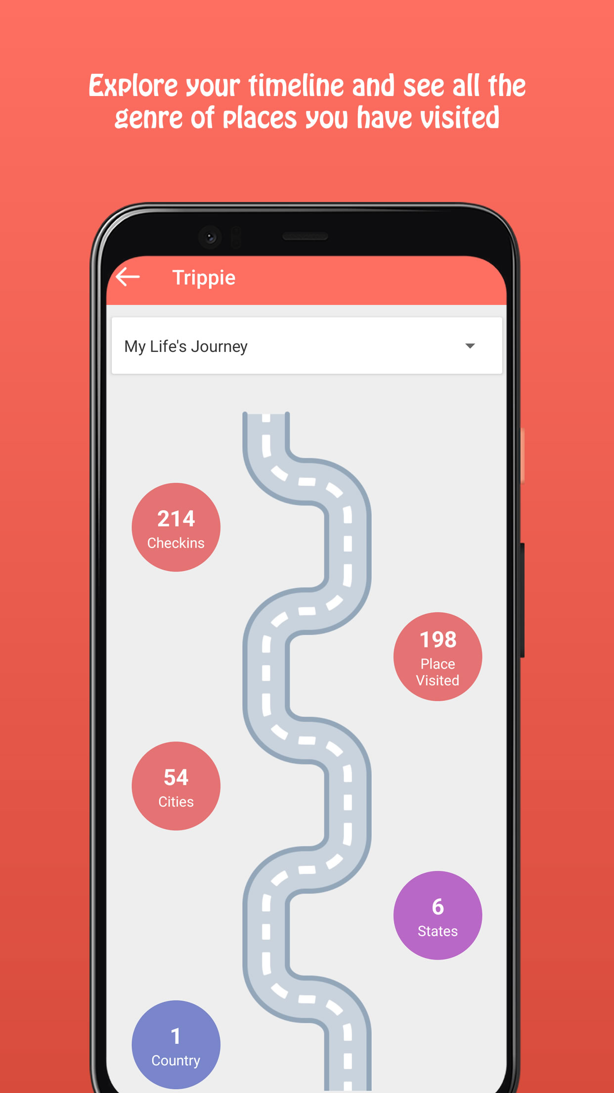 Track the types of places you’ve explored—food spots, temples, parks, museums—and your travel footprint across cities, states, and countries.